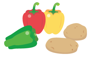 | じゃが芋はスティック切り、ピーマン・パプリカは厚めの千切りにする。調味料は計量しておく。 | |