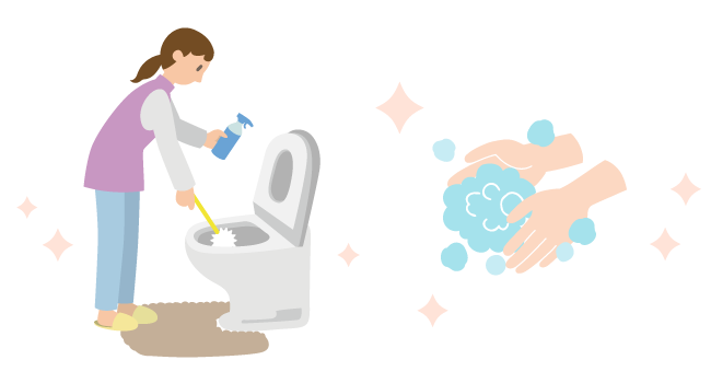 ✔用便後、手洗いの前にドアノブなどに触れないこと。